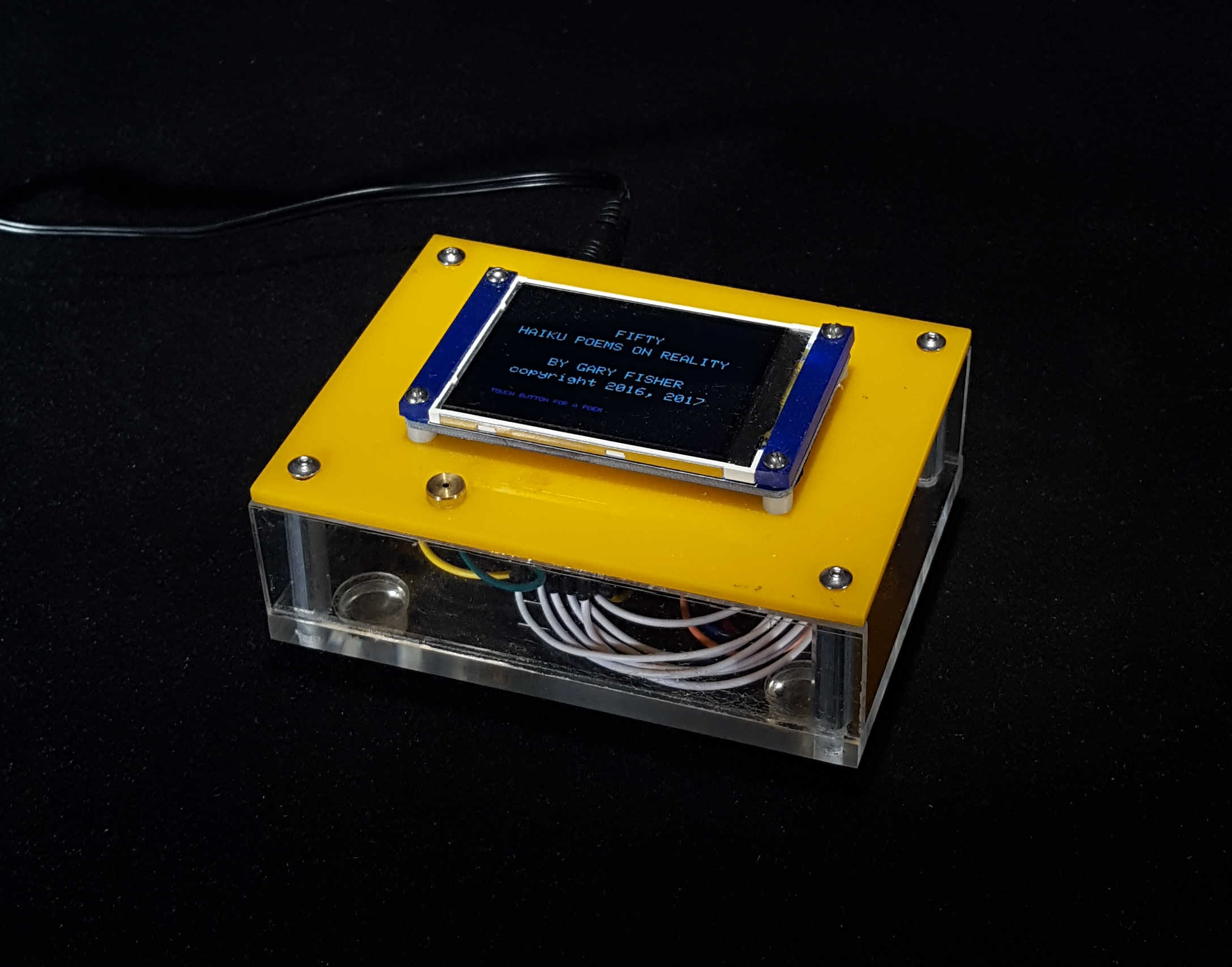 TFT touch screen, microcontroller, custom software, wood, acrylic, original poem