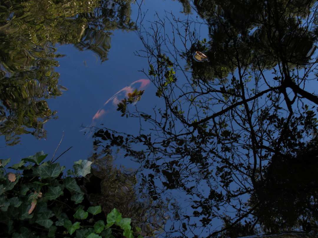 When viewed with anaglyph glasses (red/blue), the red and blue curves coalesce into a single black curve which floats around a central white orb, symbolizing the merging of ying and yang.