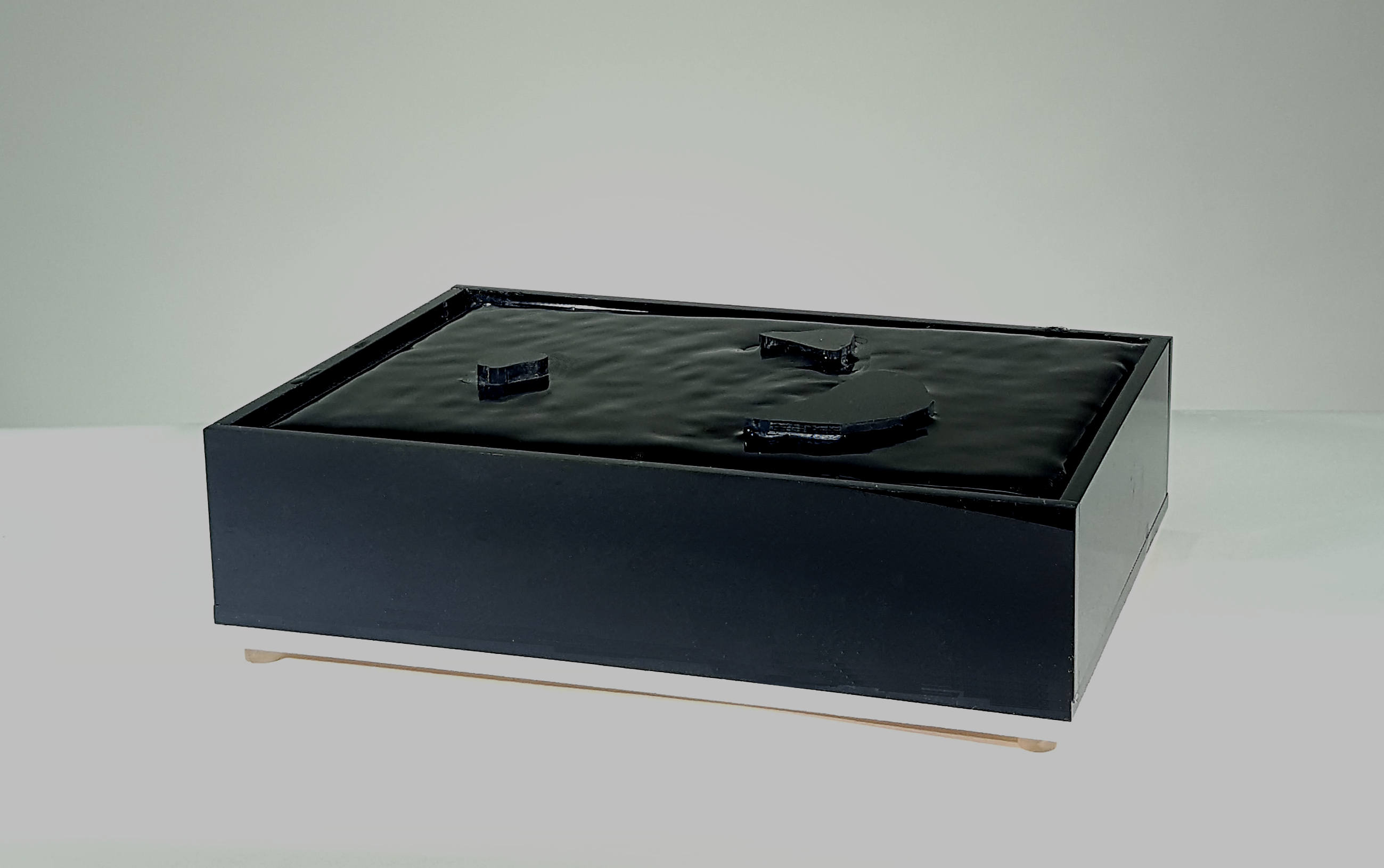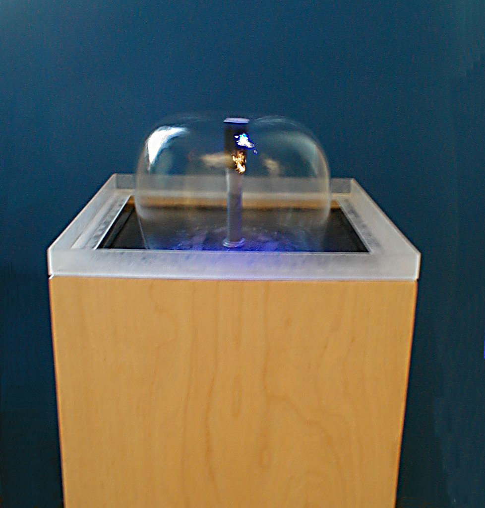 (1995 version: acrylic platform, acrylic enclosure, pump, natural river rocks)
