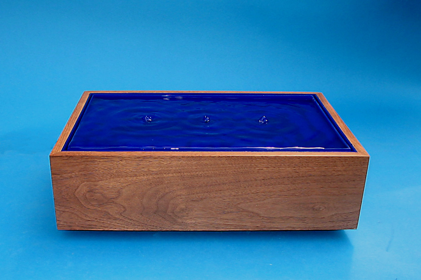 (2009 version: acrylic platform, acrylic enclosure, patented control electronics, custom software, pump, natural river rocks)